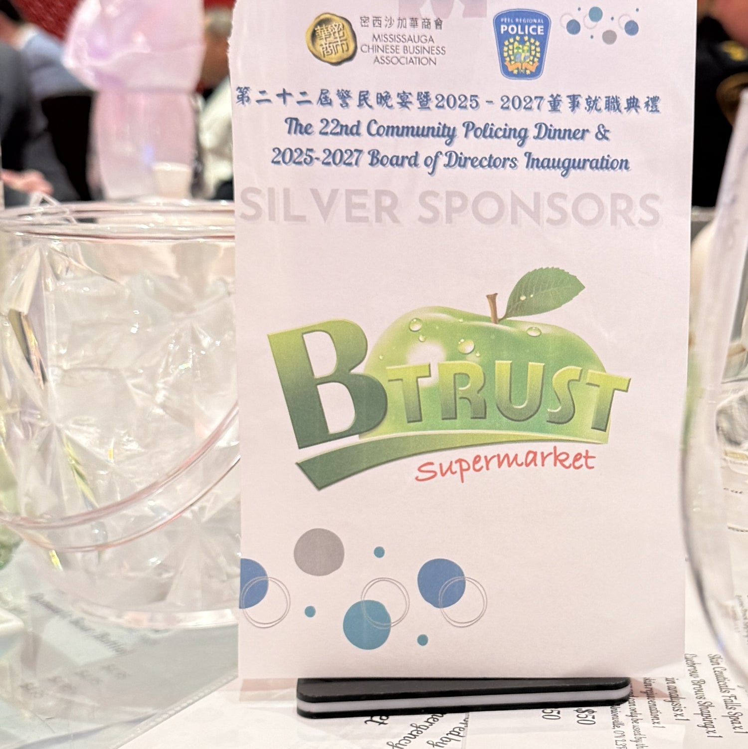 Mississauga, September 5, 2025 - BTRUST Supermarket, a local Asian grocery chain rooted in the community, is proud to sponsor and take part in the 22nd Community Policing Dinner & 2025–2027 Board of Directors Inauguration, hosted by the Mississauga Chinese Business Association (MCBA) on September 3.